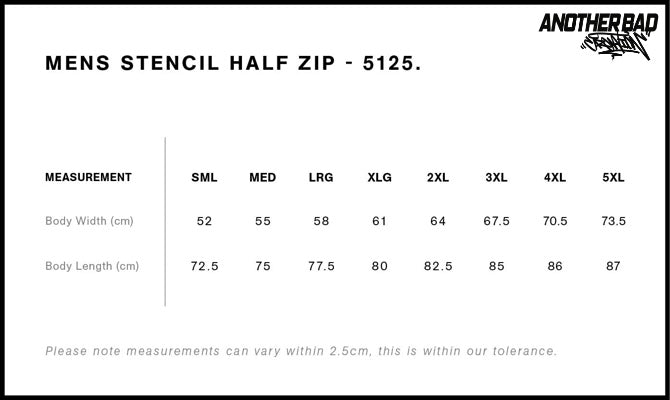 Printed on AS Color - Black Mens Stencil Half Zip Crew - only available in Men's - SML - 3XL